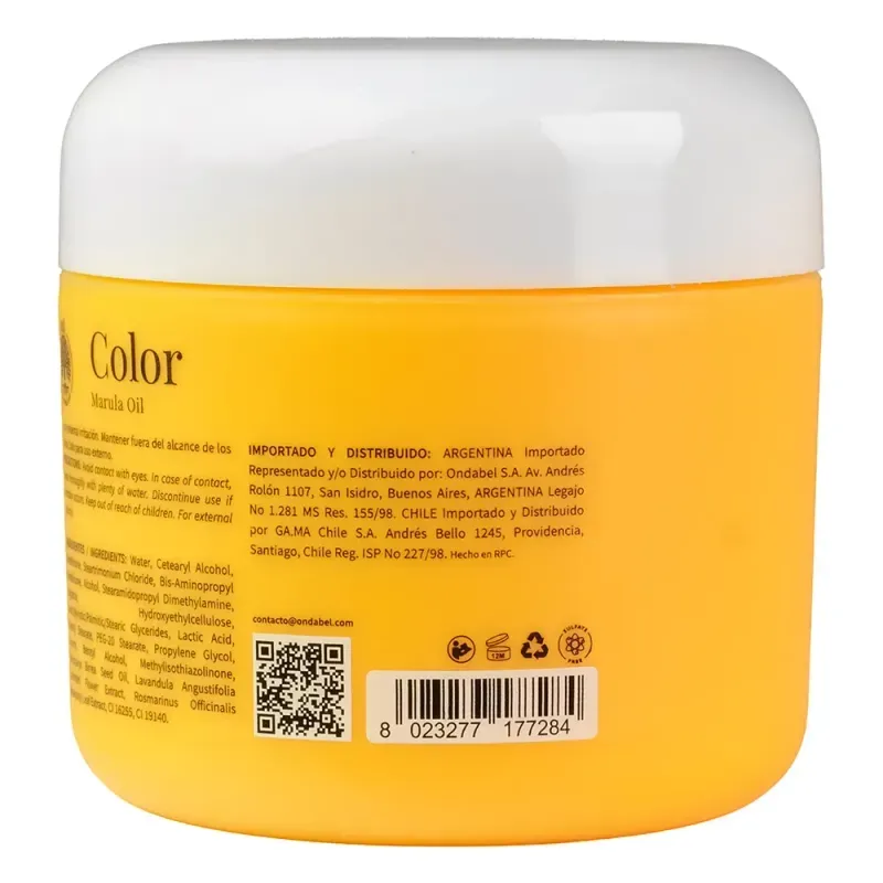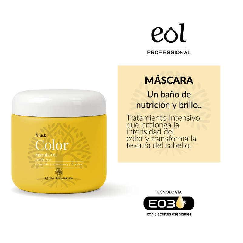 Tratamiento intensivo que nutre, repara y prolonga la intensidad del color. Su fórmula rica en aceites y extractos botánicos deja el cabello suave, brillante y manejable, protegiéndolo contra la resequedad y el frizz. Ingredientes principales: Aceite de Marula: alto en antioxidantes y ácidos grasos, nutre en profundidad y aporta brillo radiante. Extracto de Lavanda: calma y protege, aportando beneficios antioxidantes. Extracto de Romero: fortalece y revitaliza la fibra capilar.