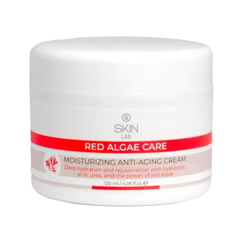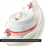 algas rojas, ácido hialurónico y urea ayuda a rejuvenecer la piel, mejorar su elasticidad y suavizar las líneas finas, dejando el rostro más