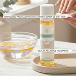 refrescar, mejorar la textura y potenciar la luminosidad natural del rostro, dejándolo suave y radiante. Ideal para todo tipo de piel, incluso las sensibles, prepara el cutis para una mejor absorción de los tratamientos posteriores.